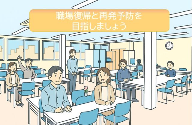 「なぜつらくなったのか」「これからどう対処していくか」を一緒に考えることで、職場復帰だけでなく、その後の再発予防にもつなげていきます。