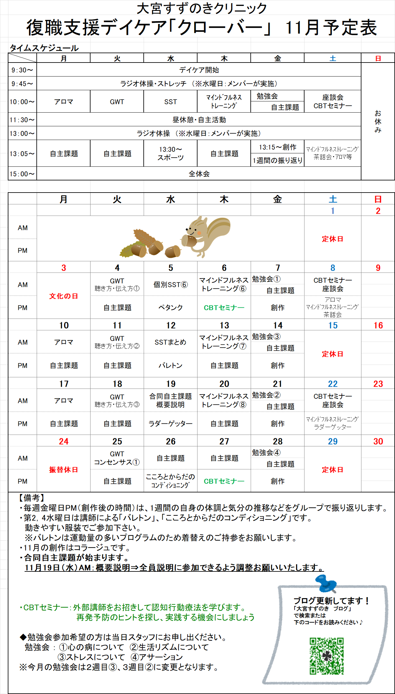みなさまこんにちは。2025年11月のプログラム表をお伝えいたします。